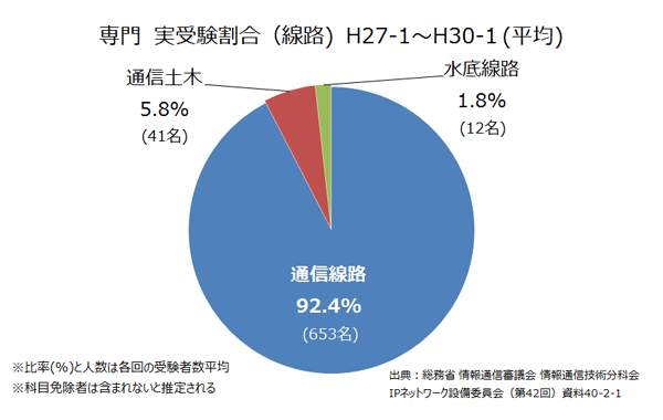 なお、過去(平成11年度第2回)試験の非公式調査データと比較すると、全く変わっていないようです。当時は 通信線路(92%) ≫ 通信土木(6%) > 水底線路(2%)という傾向でした。